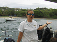 For the next two days we dove with Bill & Nadine Beard off the coast of Playa Hermosa, with Ocotol Beach Resort’s diving operation. Diving on the west coast of Costa Rica reminded me of diving in California, only warmer. The boats we used were all professionally run with a Captain and two Divemasters. Our Divemaster was an experienced Diver and very charismatic. But aren’t all Divemasters? The Divemasters at Ocotol actually get in the water with you and act as underwater guides. They even take your gear back to the dive shop and wash it for you. What a great dive staff!
