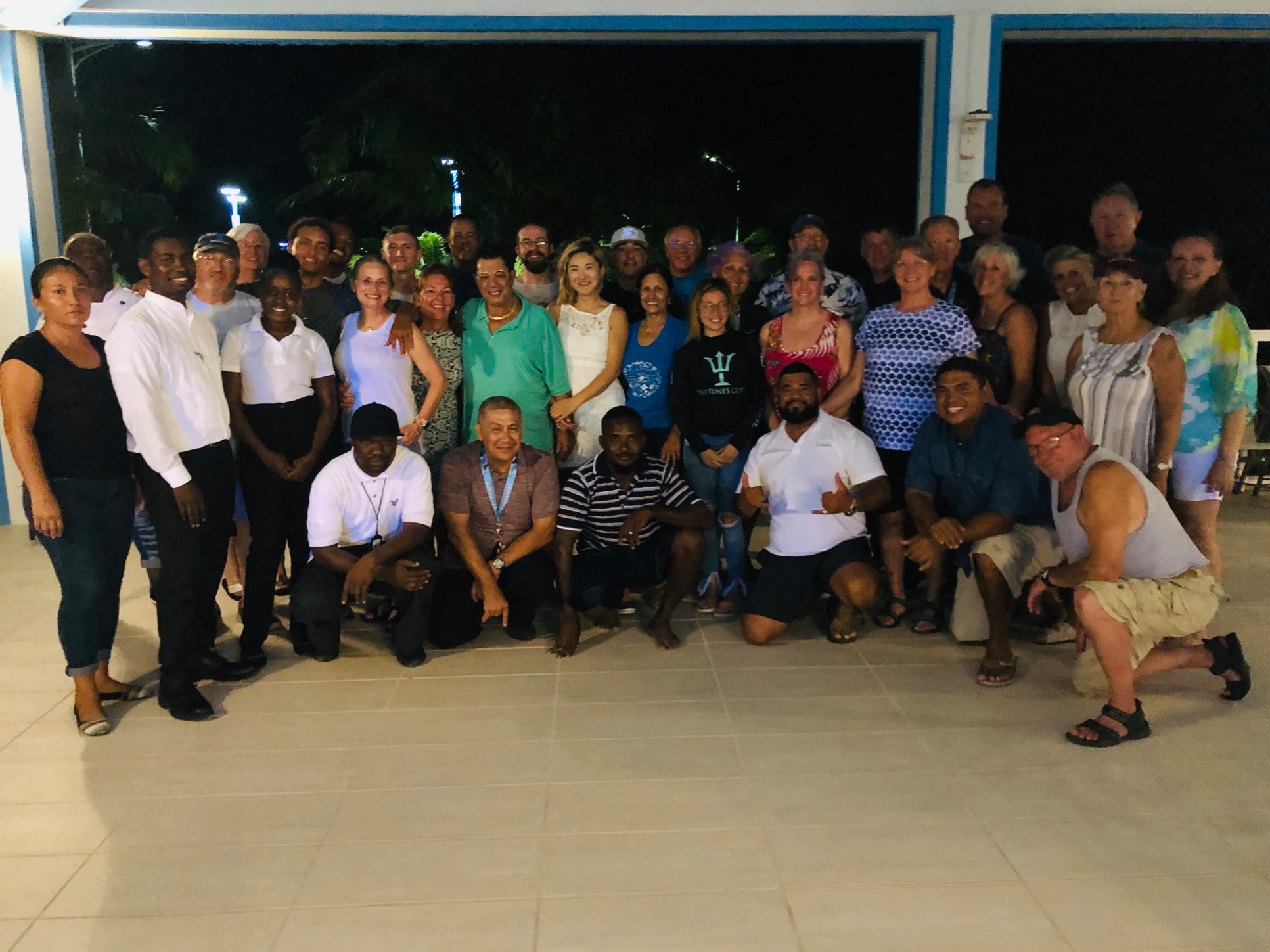 We had plenty of time to unpack, connect to the internet and enjoy a movie on NetFlix. Thanks to the resort’s own communication tower on campus, we had all the internet and wi-fi we needed to correspond with the world. I was starting to see that Belize Dive Haven was designed as a self-sustaining complex, with its own electricity, water making capability and internet communication. That evening we had a welcome aboard dinner, handed out the Gift Bags and got to relax over drinks with our new companions. A staff introduction by Max made us all feel at home with our new hosts.